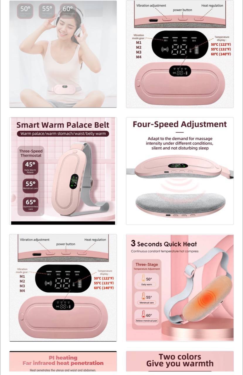 RECHARGEABLE MENSTRUATION CRAMP HEATING AND VIBRATING SOOTHING BELT/MASSAGER